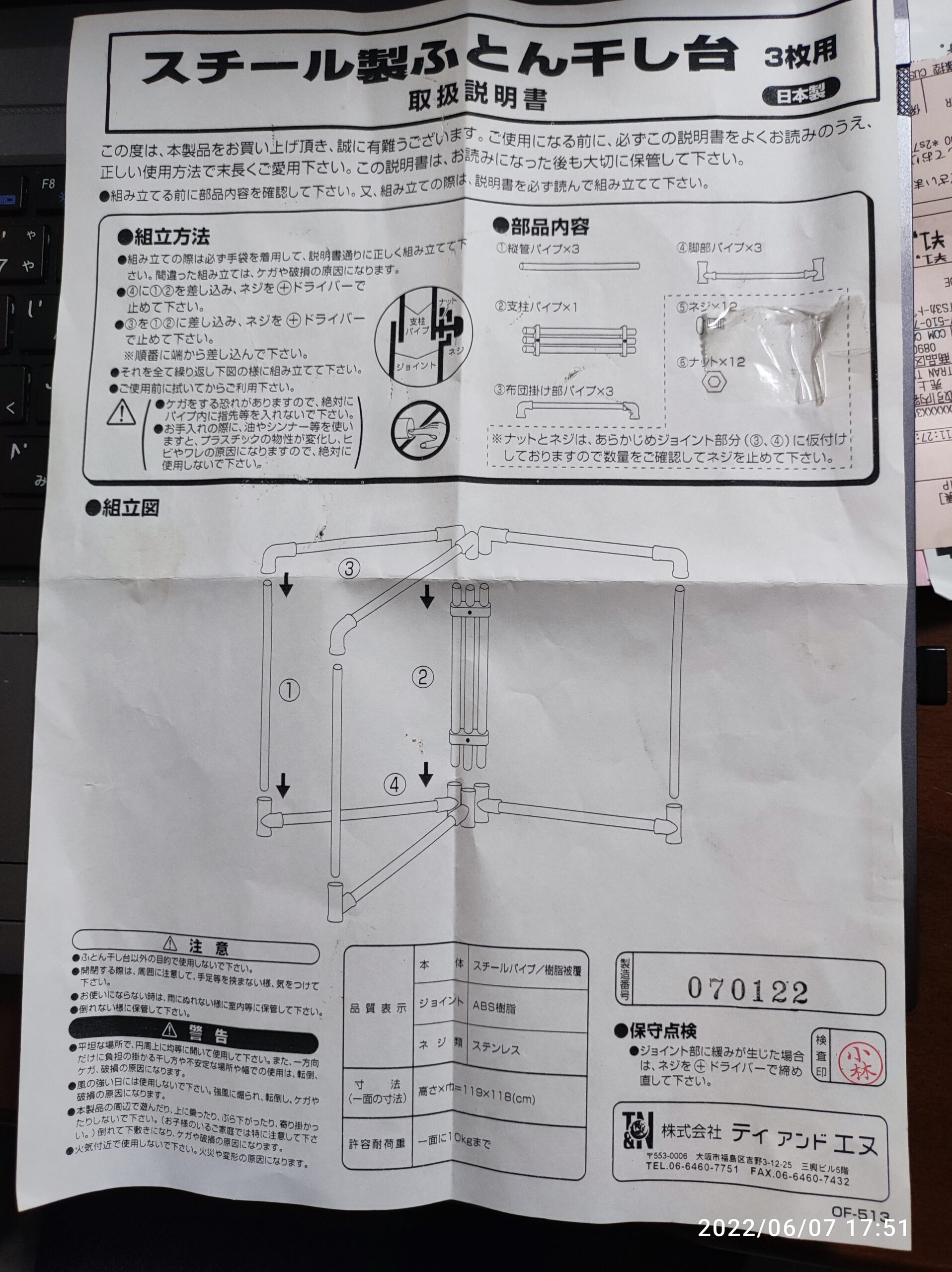 布団干し スチール製布団干し台 3枚用